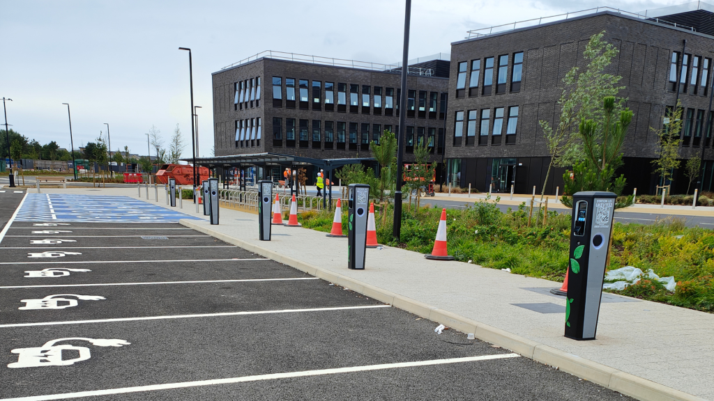 Fast, flexible EV charging at Canolfan Pentre Awel, Llanelli — smart, 24/7 managed AC and DC bays powering fleets, staff, and visitors while driving sustainability.
